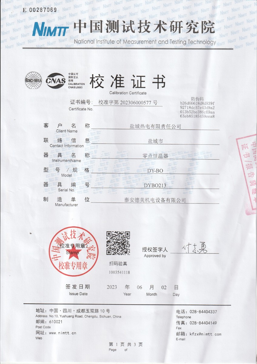 鹽城熱電有限責(zé)任公司-零點恒溫器 2023-6-9 本文被閱讀 18819 次