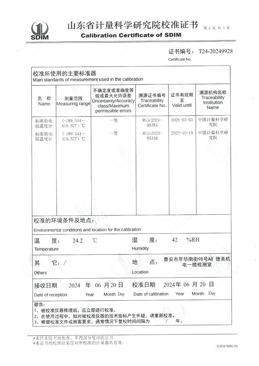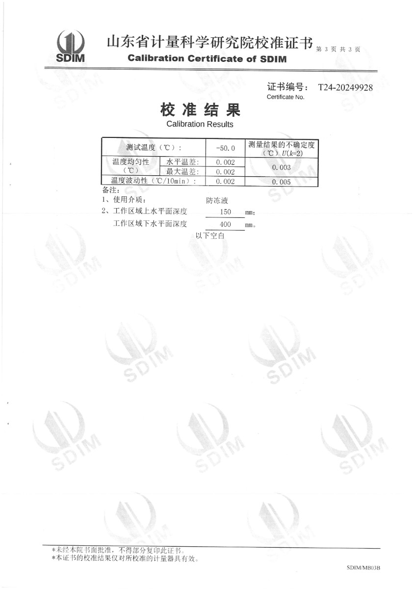 制冷恒溫槽(-50~95℃)校準證書 2024-6-26 本文被閱讀 6692 次