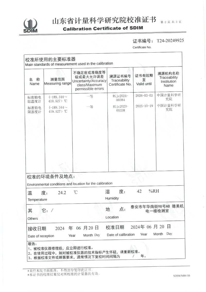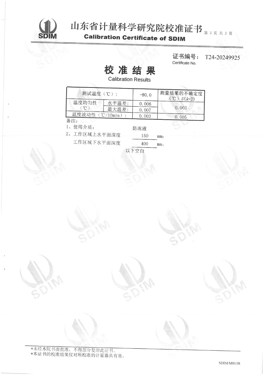 制冷恒溫槽(-80~95℃)校準(zhǔn)證書 2024-6-26 本文被閱讀 6742 次