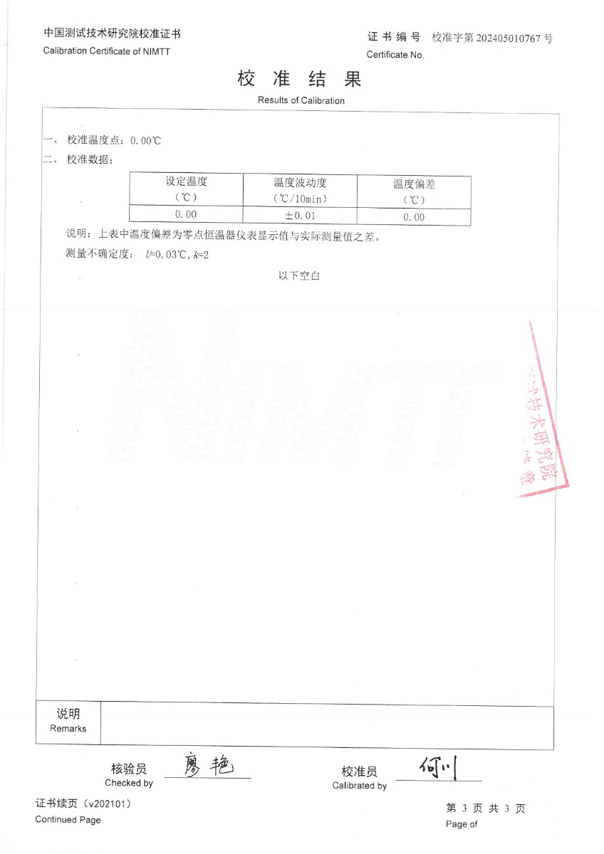 零點(diǎn)恒溫器校準(zhǔn)證書