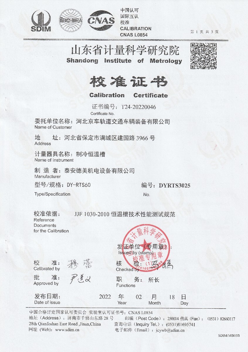 河北京車軌道交通車輛裝備有限公司-制冷恒溫槽 2022-2-28 本文被閱讀 14315 次