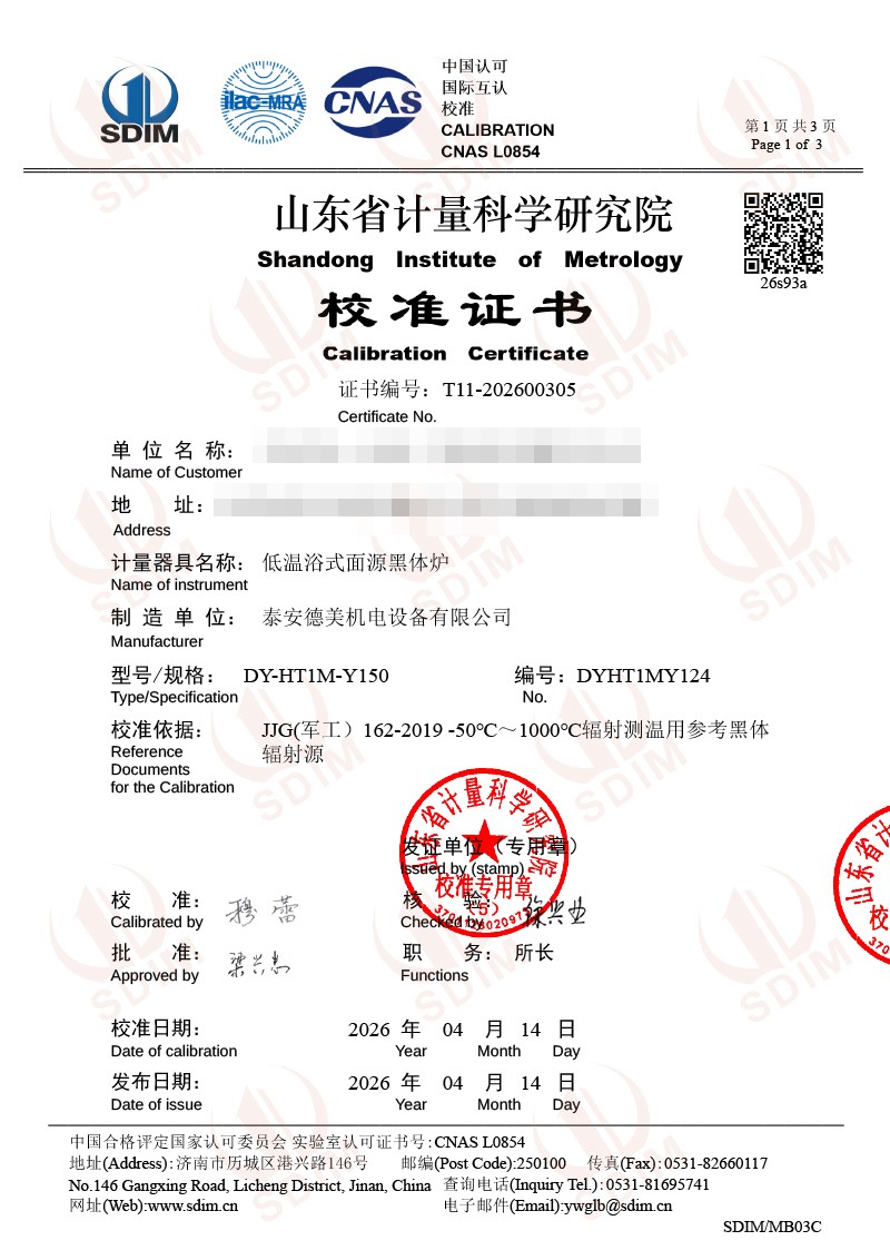 低溫浴式面源黑體爐-校準(zhǔn)證書 2026-4-20 本文被閱讀 6 次