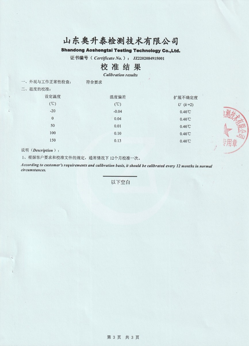 | 上一條:遼寧昆侖儀器儀表檢驗(yàn)檢測(cè)有限公司-高精度數(shù)字溫度計(jì) | 下一條:制冷恒溫槽-校準(zhǔn)證書 |