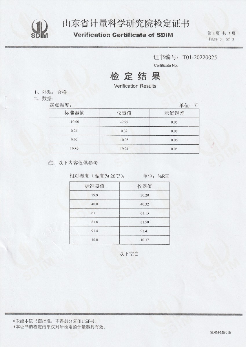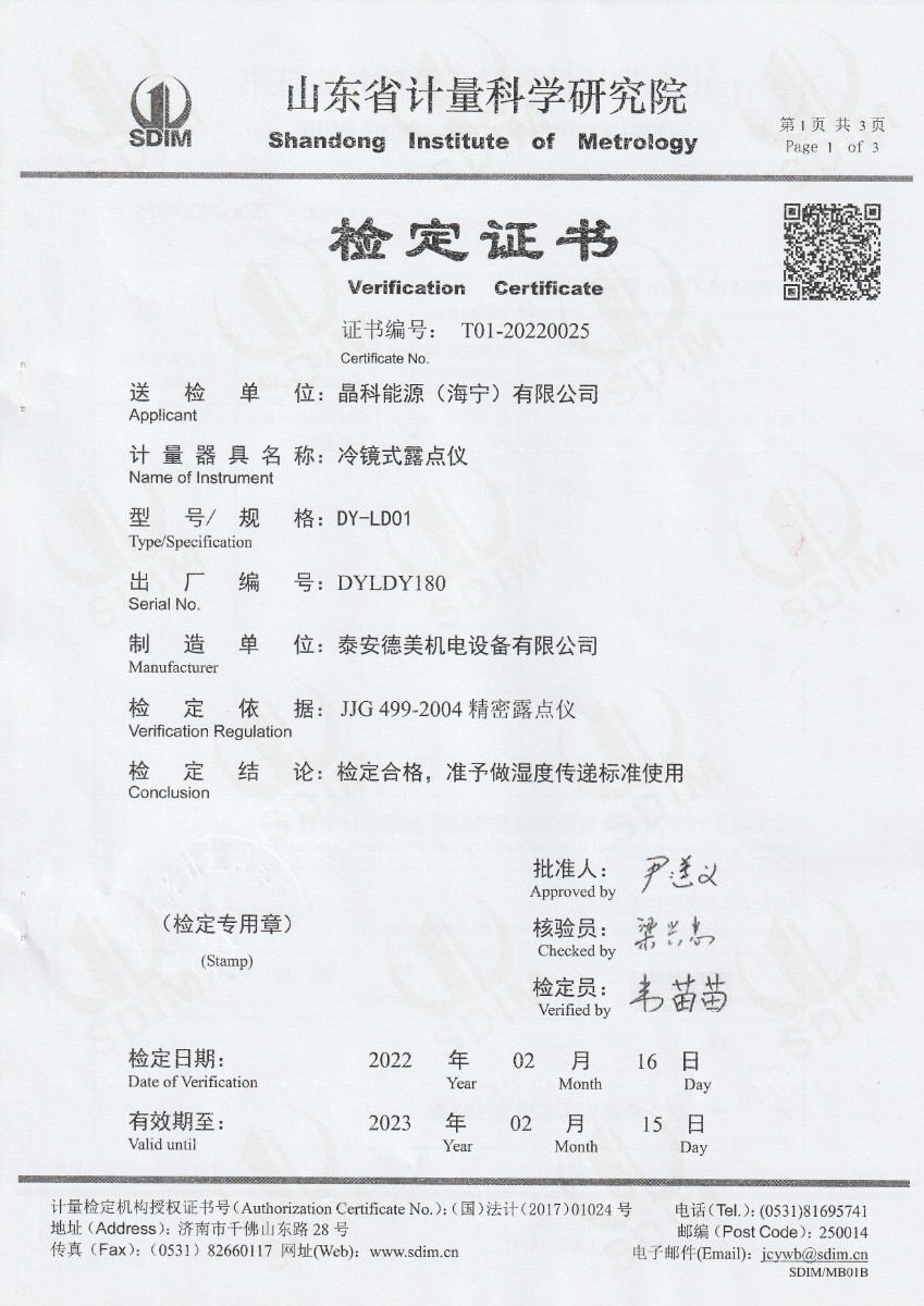 | 上一條:晶科能源(海寧)有限公司-冷鏡式露點儀(溫度)校準(zhǔn)證書 | 下一條:中溫面源黑體爐-校準(zhǔn)證書 |