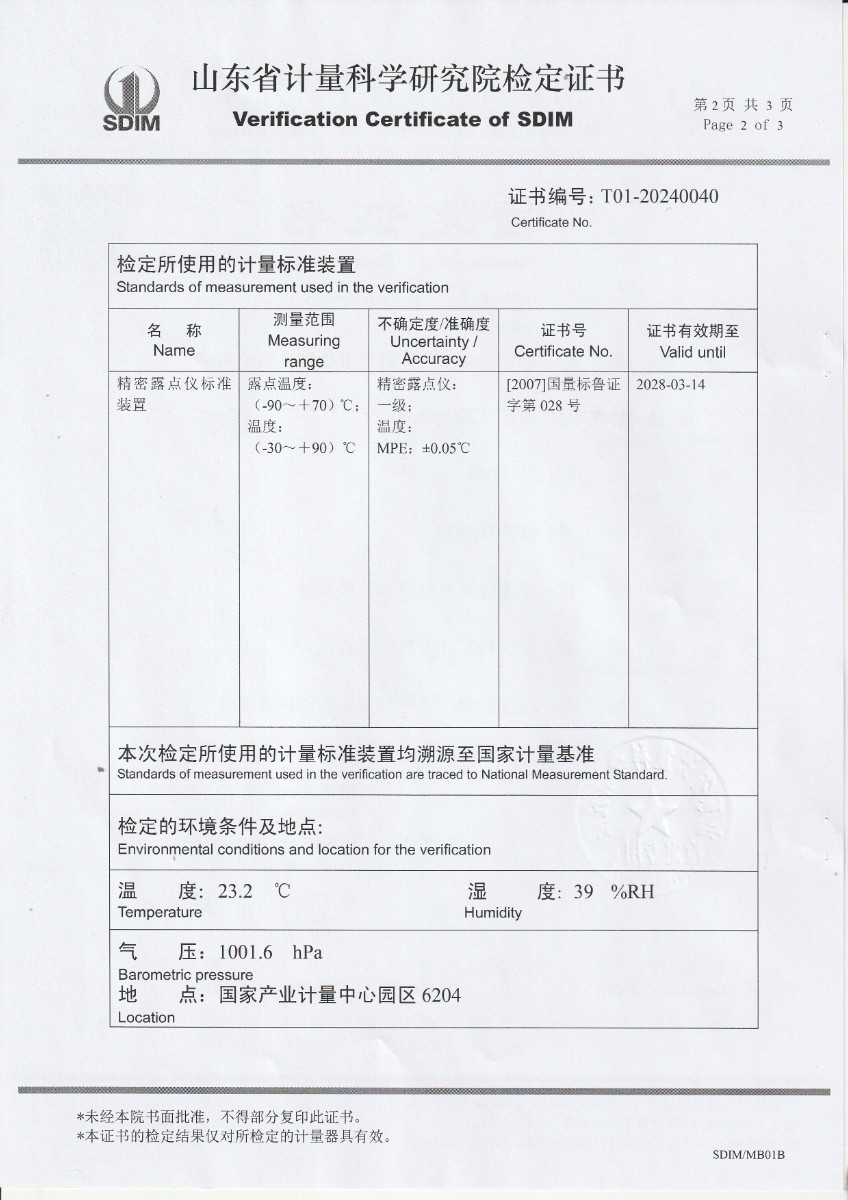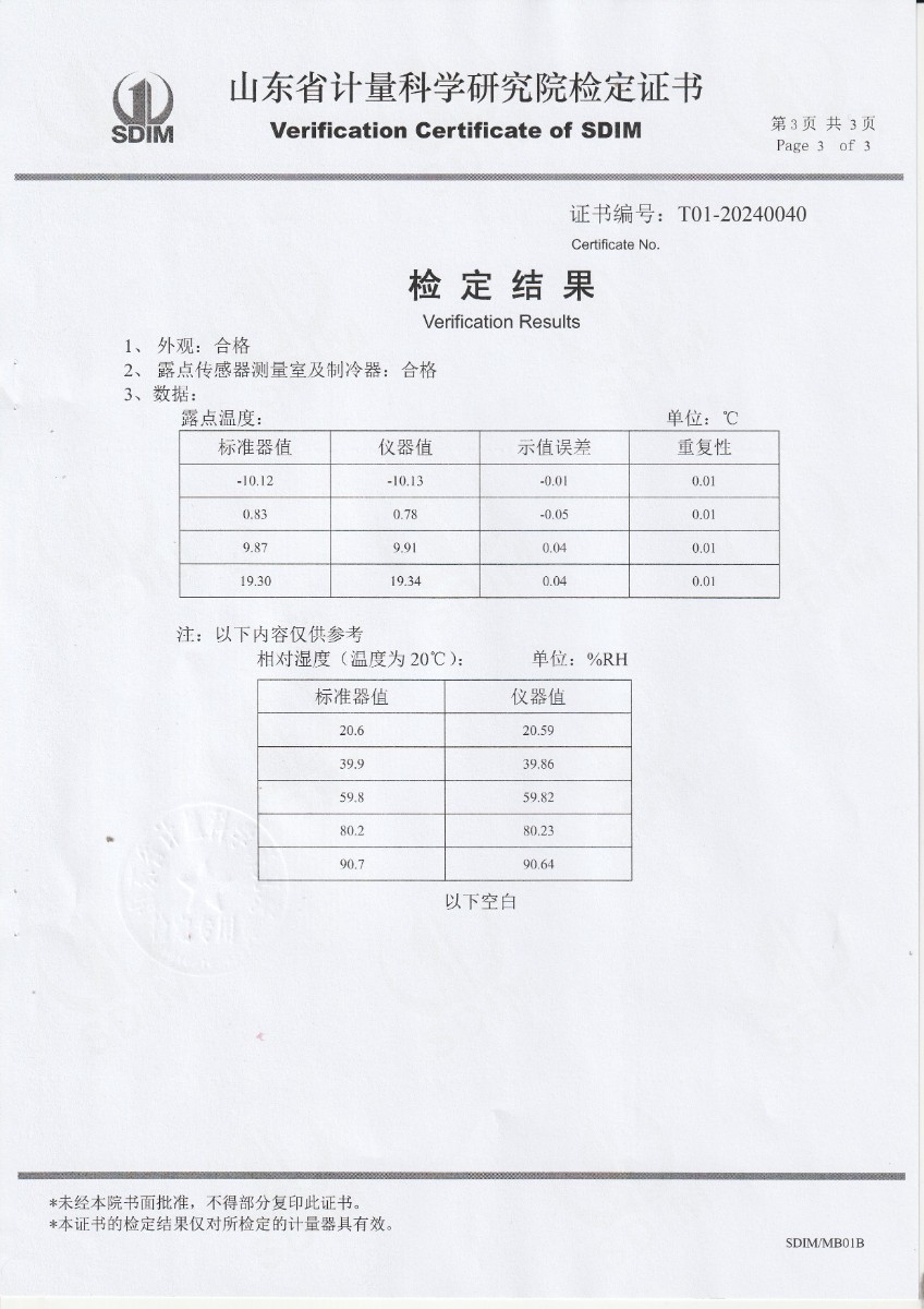 冷鏡式露點(diǎn)儀檢定證書 2024-3-22 本文被閱讀 6352 次