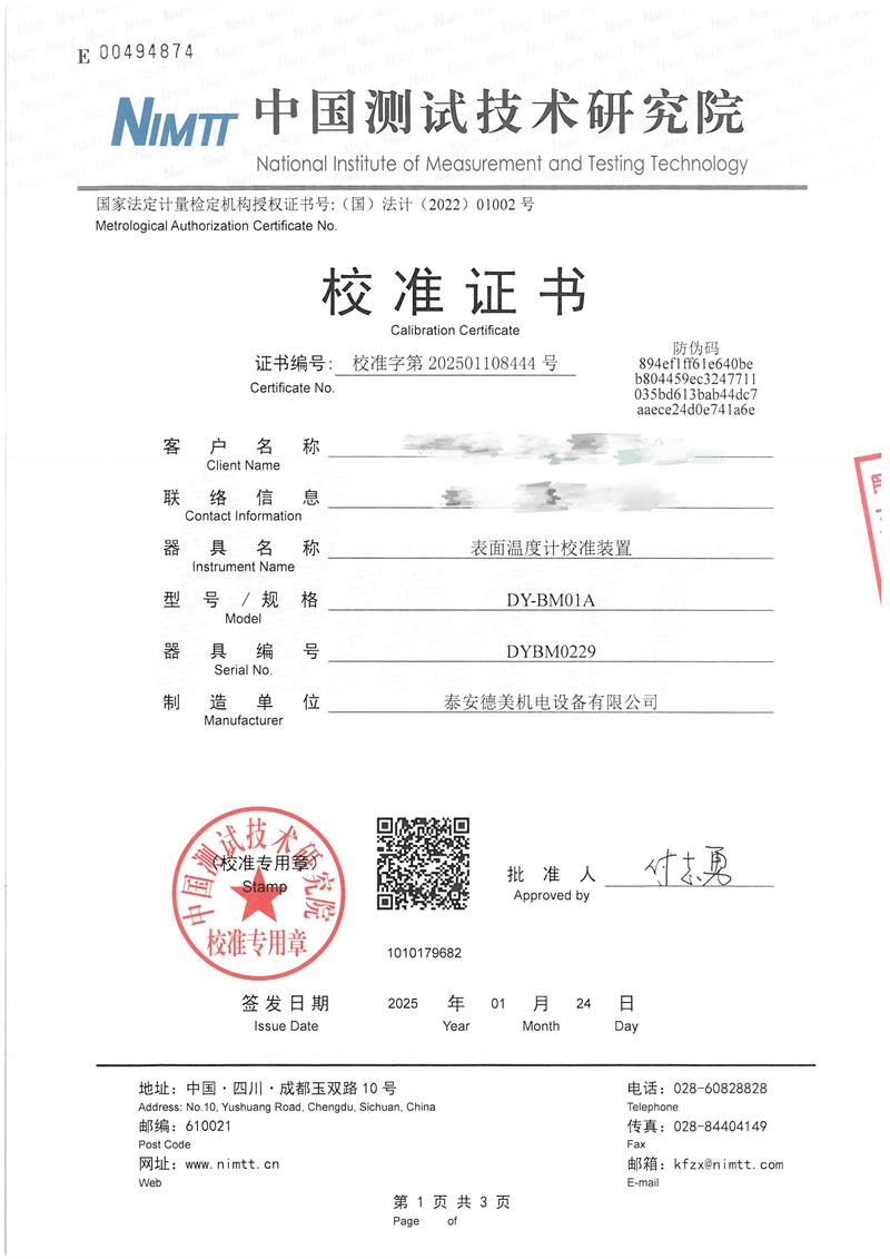 表面溫度計校準(zhǔn)裝置-校準(zhǔn)證書 2025-2-14 本文被閱讀 6459 次