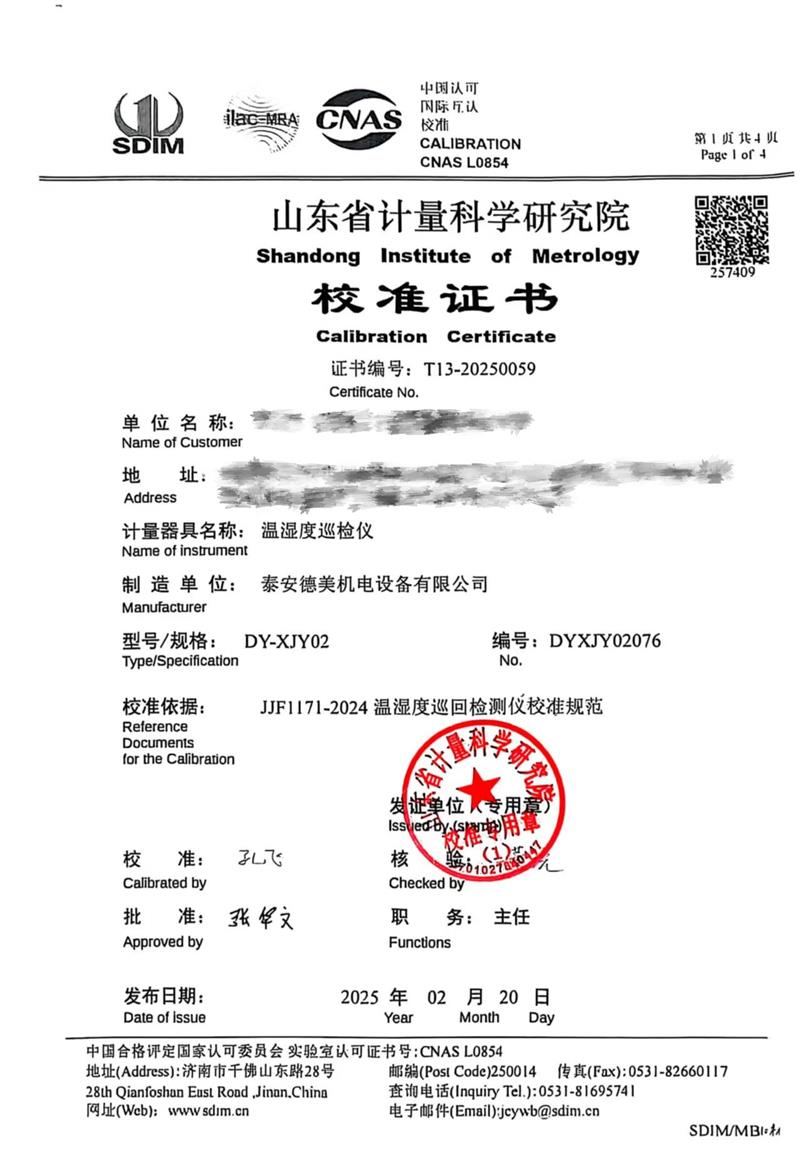 溫濕度巡檢儀校準(zhǔn)證書 2025-2-22 本文被閱讀 5710 次