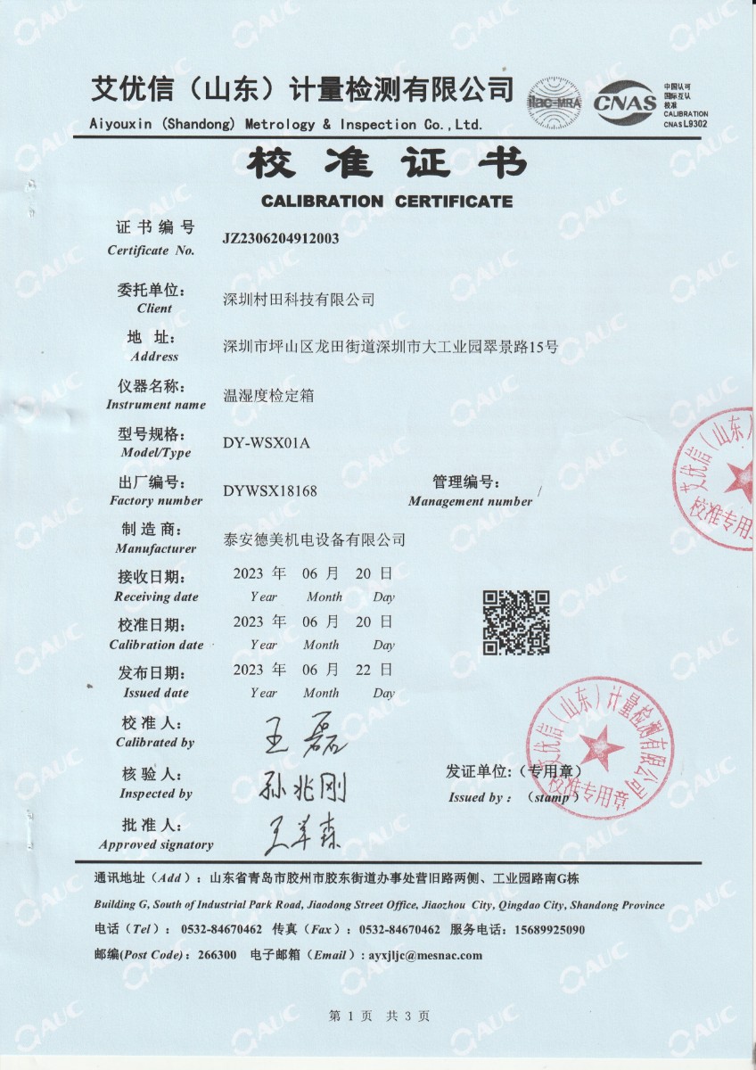 深圳村田科技有限公司-溫濕度檢定箱 2023-7-3 本文被閱讀 12561 次